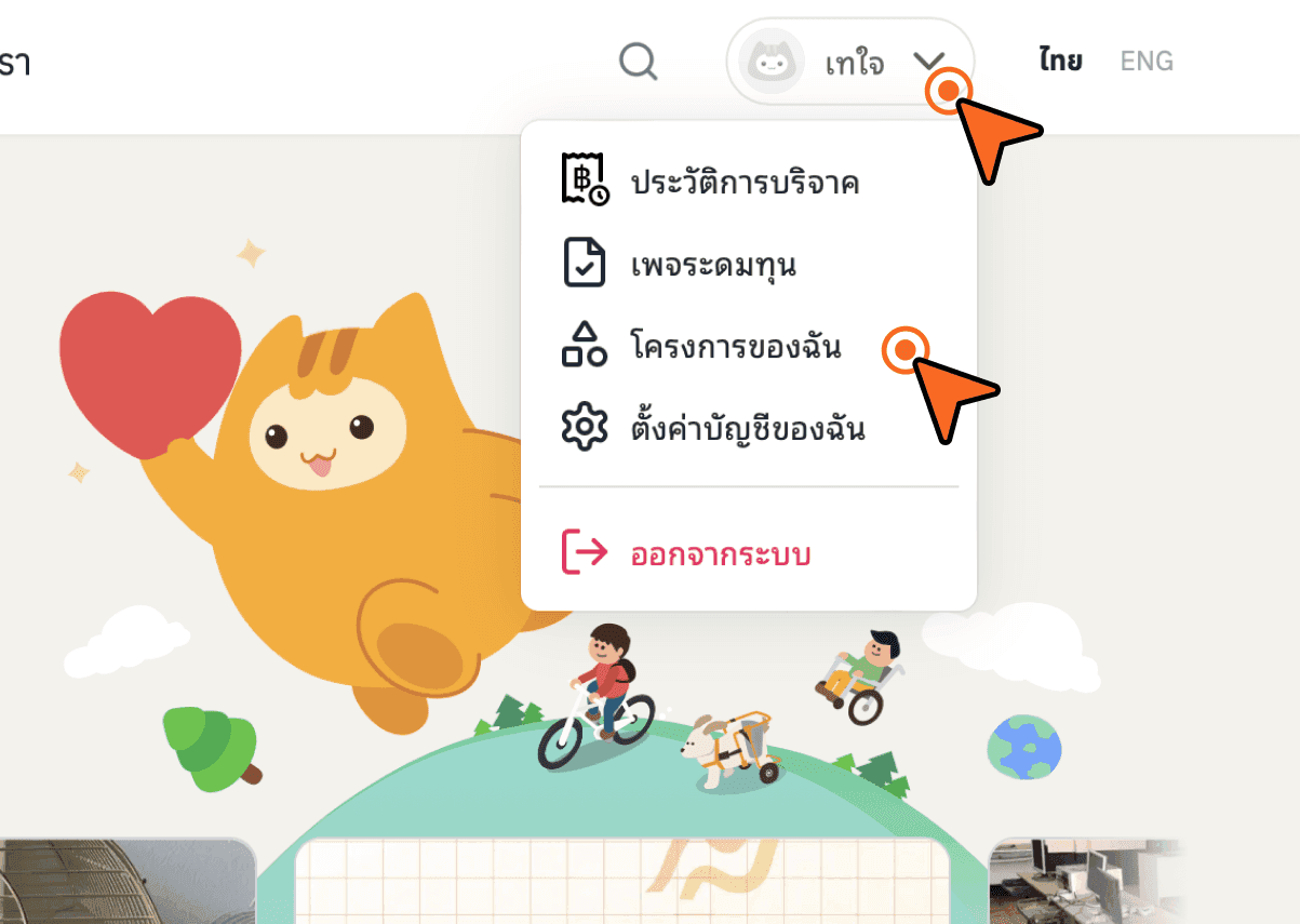 เจ้าของโครงการเข้าไปที่โปรไฟล์ของคุณบนเว็บไซต์ เลือก “โครงการของฉัน”