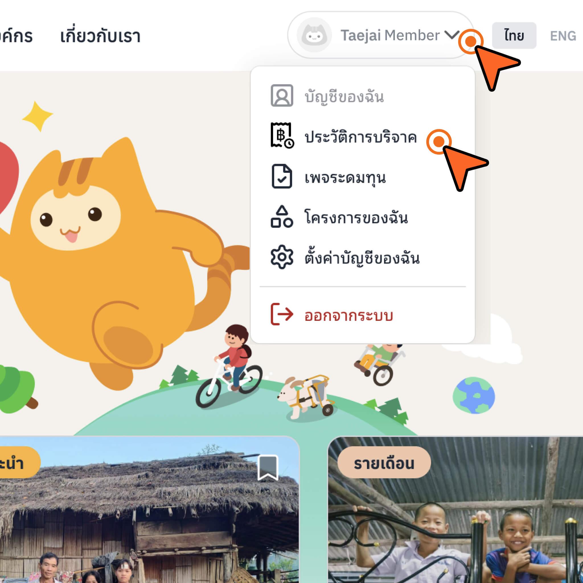 เข้าไปที่โปรไฟล์ของคุณบนเว็บไซต์เทใจ